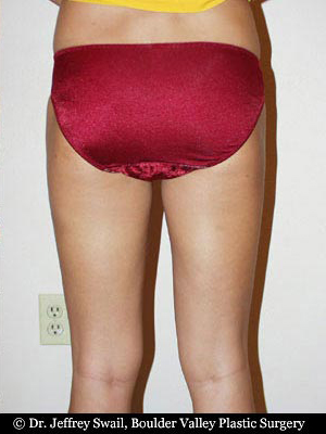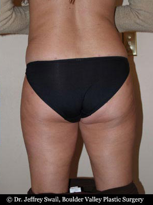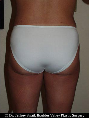 Reference #2090 | This photograph at several weeks after surgery shows tiny liposuction incisions that have not yet faded. | Gender: Female