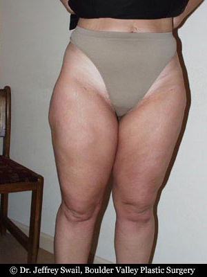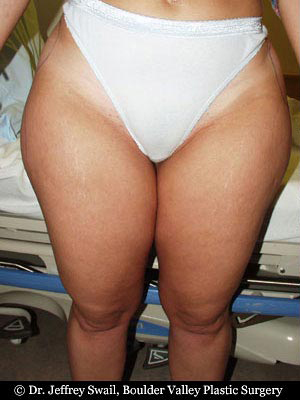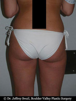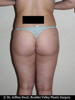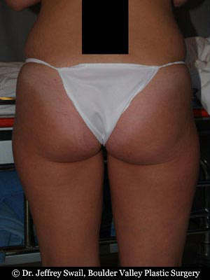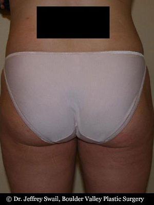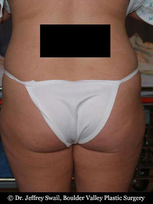 Reference #2092 | This photograph at several weeks after surgery shows tiny liposuction incisions that have not yet faded. Gender: Female